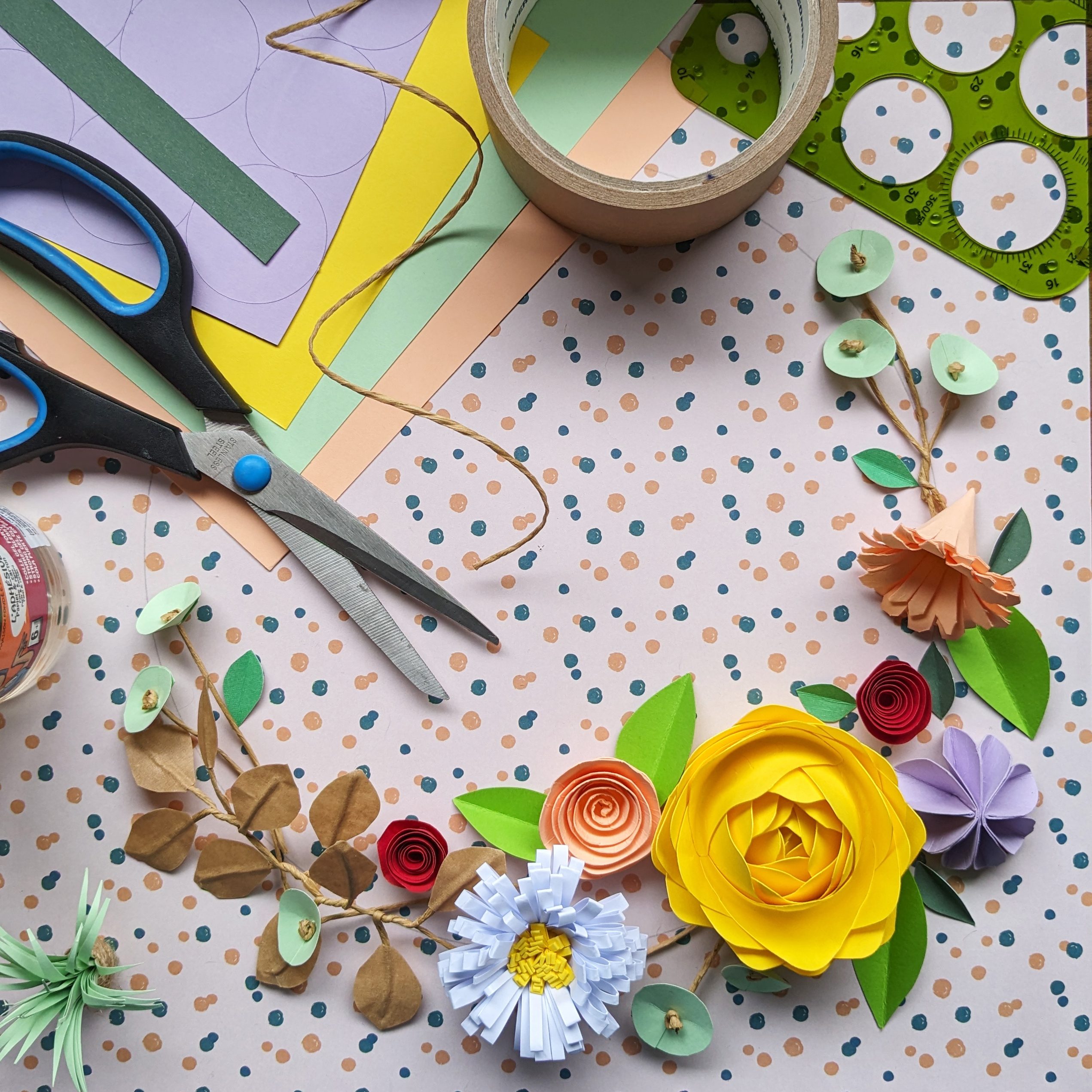 ✨ Venez découvrir différentes techniques de réalisation de fleurs et feuillages en papier et en relief, pour ensuite concevoir votre propre composition florale.