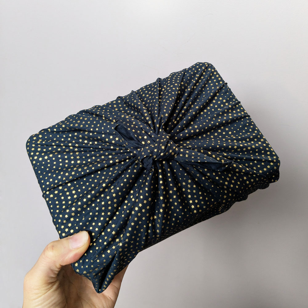 Pas besoin de ruban adhésif ni de ruban synthétique, il suffit de nouer le tissu et on obtient un emballage élégant.